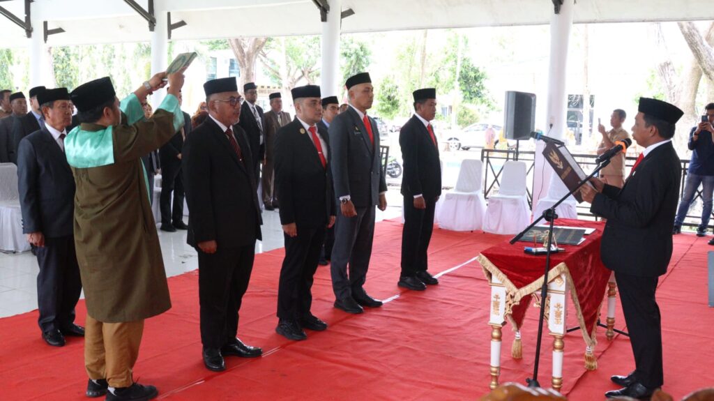 Bupati Sidenreng Rappang (Sidrap), H. Syahruddin Alrif, memimpin pelantikan dan pengambilan sumpah jabatan empat pejabat pimpinan tinggi pratama di Baruga Kompleks SKPD, Selasa (26/8/2025).