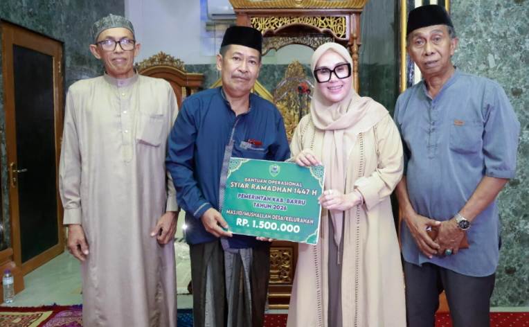 Bupati Barru, Andi Ina Kartika Sari, memaparkan capaian pembangunan dan program strategis pemerintah daerah saat melaksanakan Safari Ramadan di Masjid At-Tauhid, Desa Kupa, Kecamatan Mallusetasi, Kamis (5/3/2026).