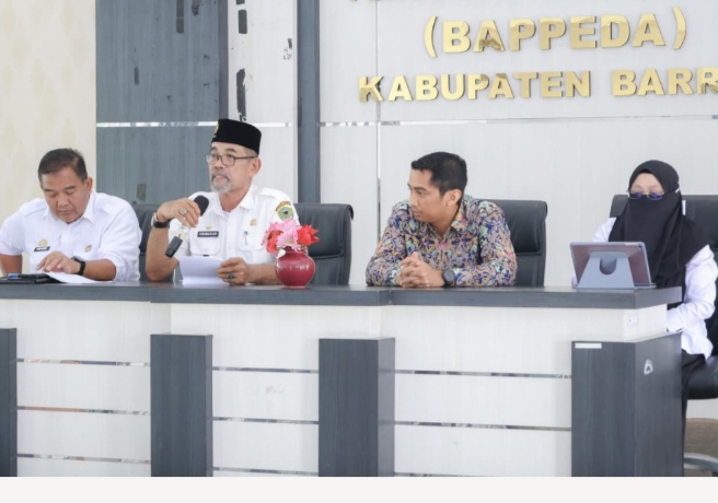 Penjabat Sekretaris Daerah Kabupaten Barru, Abubakar, S.Sos., M.Si., membuka secara resmi Kick Off Meeting Implementasi Strategi Sanitasi Kabupaten (SSK) dalam kerangka Program Percepatan Pembangunan Sanitasi Permukiman (PPSP), Rabu (11/3/2026), di Kantor Bapperida Barru.